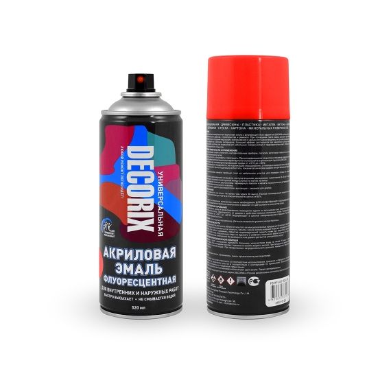 Высококачественная универсальная акриловая эмаль с флуоресцентным эффектом DECORIX используется в декоративно-оформительских работах, строительстве и ремонте.