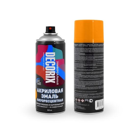 Высококачественная универсальная акриловая эмаль с флуоресцентным эффектом DECORIX используется в декоративно-оформительских работах, строительстве и ремонте.