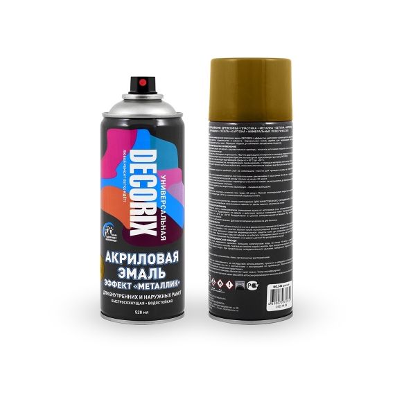 Высококачественная универсальная акриловая эмаль DECORIX с эффектом «металлик» используется в декоративно-оформительских работах, строительстве и ремонте.
