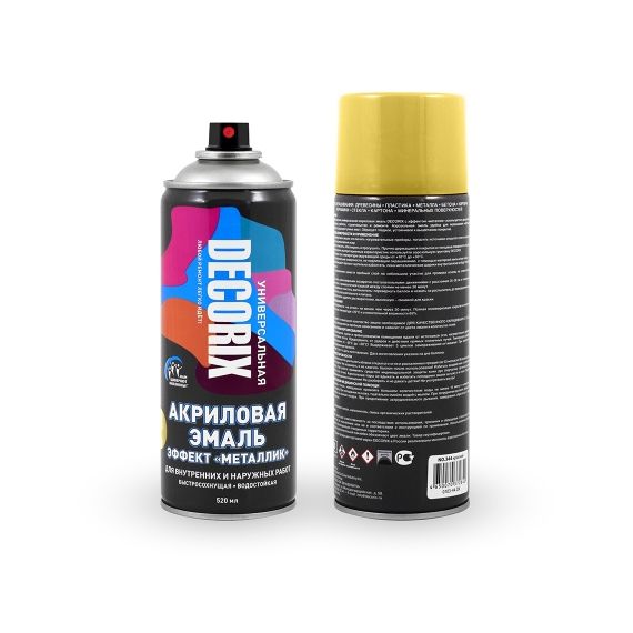 Высококачественная универсальная акриловая эмаль DECORIX с эффектом «металлик» используется в декоративно-оформительских работах, строительстве и ремонте.