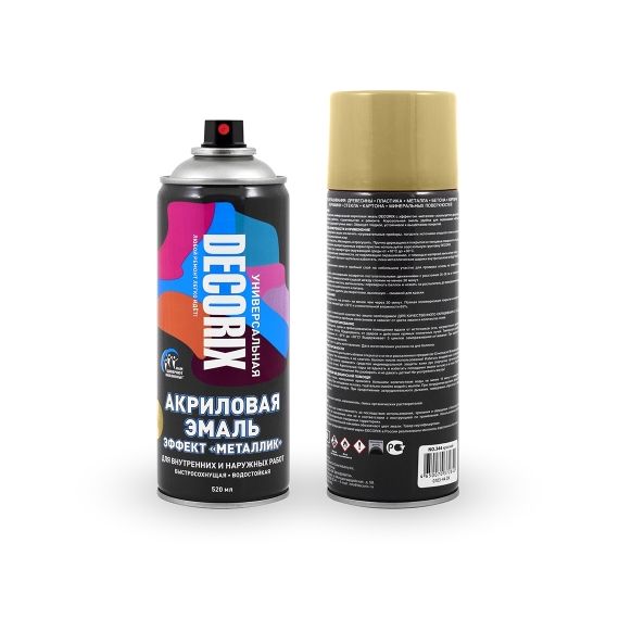 Высококачественная универсальная акриловая эмаль DECORIX с эффектом «металлик» используется в декоративно-оформительских работах, строительстве и ремонте.