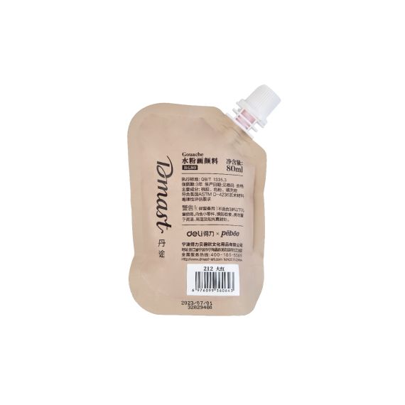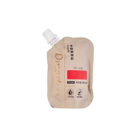 Гуашь поставляется в упаковках «дой-пак» объёмом 80 мл. Упаковка «дой-пак» прочная и компактная, позволяет герметично хранить краски и удобно отмерять необходимое количество.