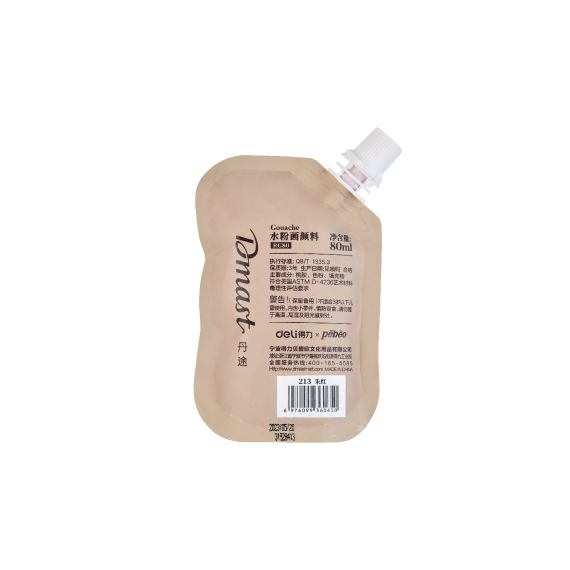 Гуашь поставляется в упаковках «дой-пак» объёмом 80 мл. Упаковка «дой-пак» прочная и компактная, позволяет герметично хранить краски и удобно отмерять необходимое количество.