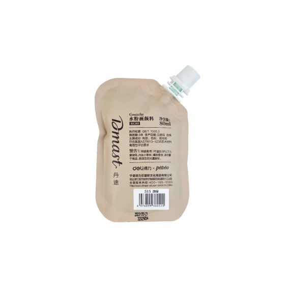 Гуашь поставляется в упаковках «дой-пак» объёмом 80 мл. Упаковка «дой-пак» прочная и компактная, позволяет герметично хранить краски и удобно отмерять необходимое количество.