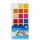 Увеличенное расстояние между кюветами, чтобы краски не смешивались во время рисования. Если нужно получить новый оттенок, на крышке предусмотрена палитра. Отделение для кисти с удобными зонами захвата – ребенок сможет быстро достать кисть, не переворачивая подложку. Удобный замок и прочные петли плотно фиксируют крышку.