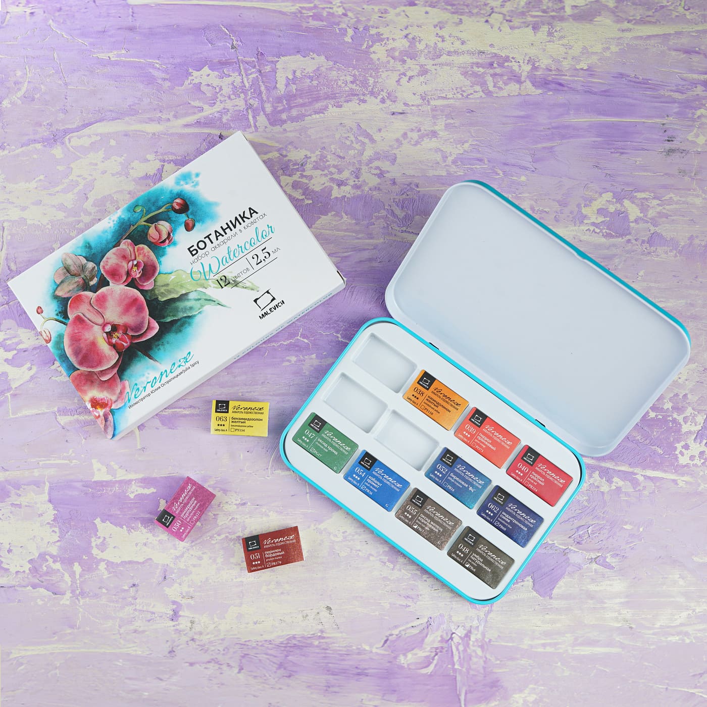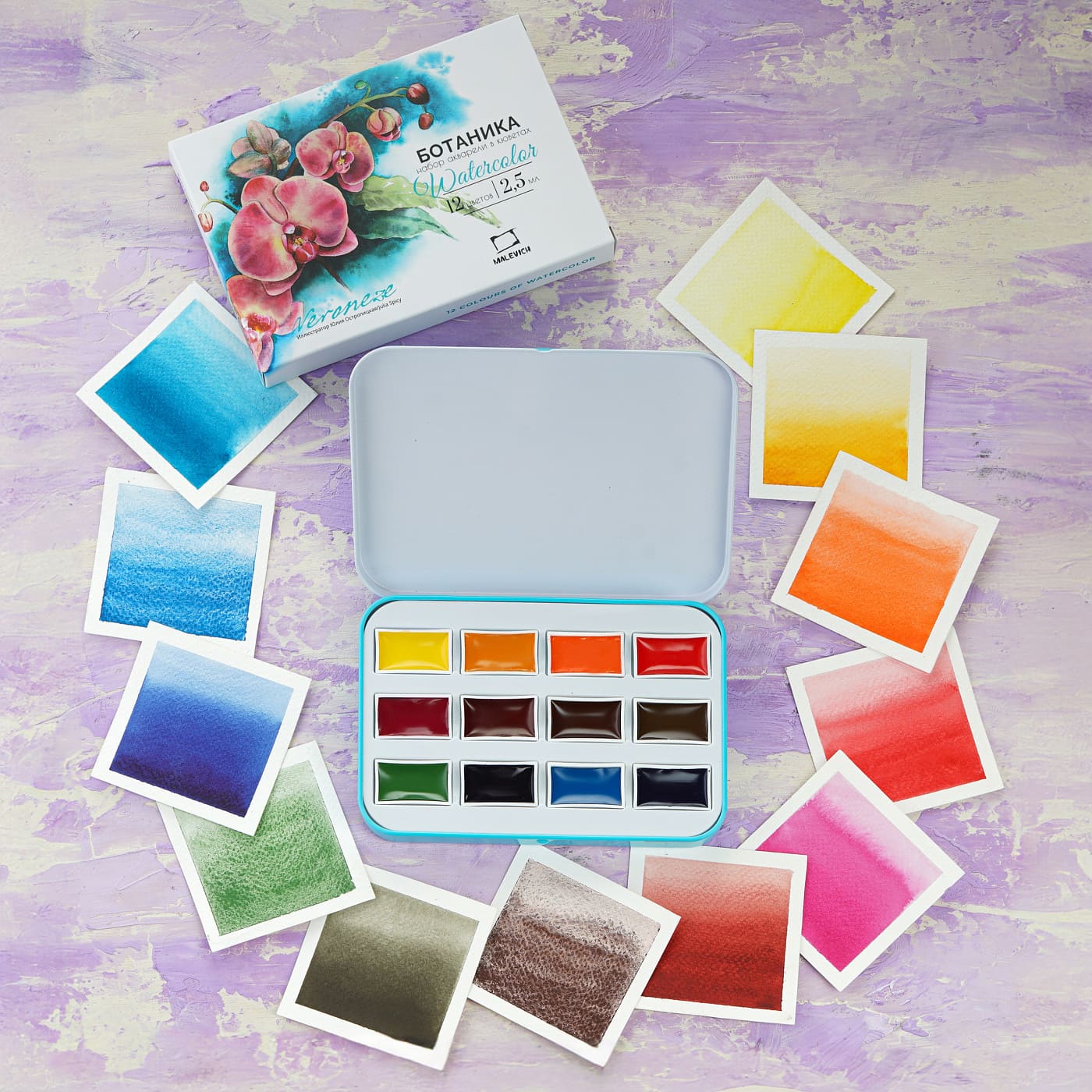 Малевичъ Набор акварельных красок кюветы 2.5мл 12цв Veroneze Ботаника