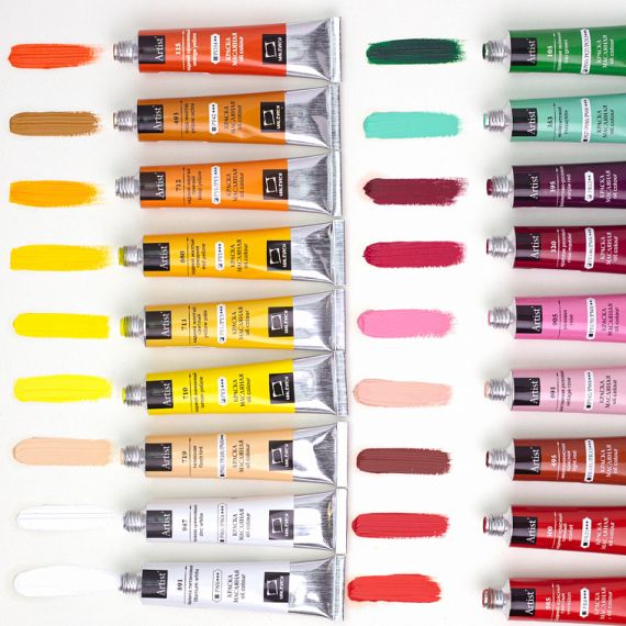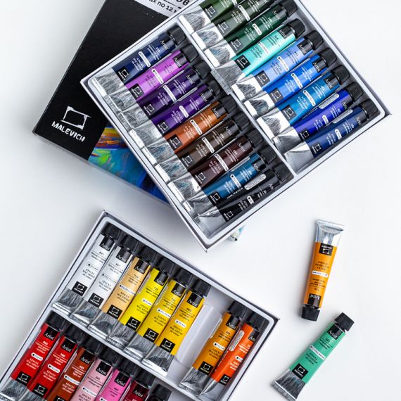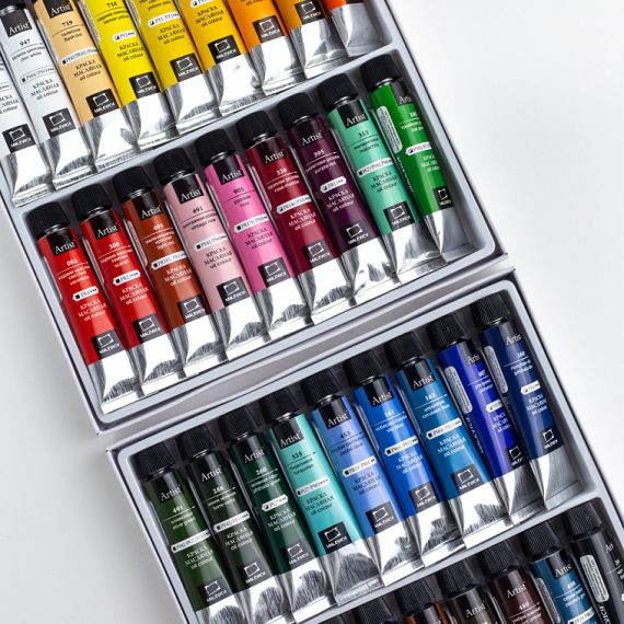 Масляные краски от бренда «Малевичъ» изготовлены по выверенной формуле с высоким содержанием пигмента, что обеспечивает высокую яркость и насыщенность цветов, устойчивость к свету и неизменность цвета в течении длительного времени. Краски обладают оптимальной плотностью и консистенцией, что гарантирует лёгкость и пластичность мазков и исключает возможность появления трещин после высыхания. В наборе 36 цветов в тубах по 12 мл.