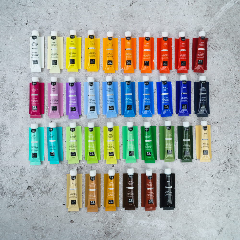 Профессиональные матовые акриловые краски «Малевичъ» для художников, которые любят экспериментировать и хотят добиться в работах определенных эффектов, а также для тех, кто не любит ярко выраженный глянец. Матовый акрил поможет разнообразить палитру художника, внести разнообразие в работу каждого.