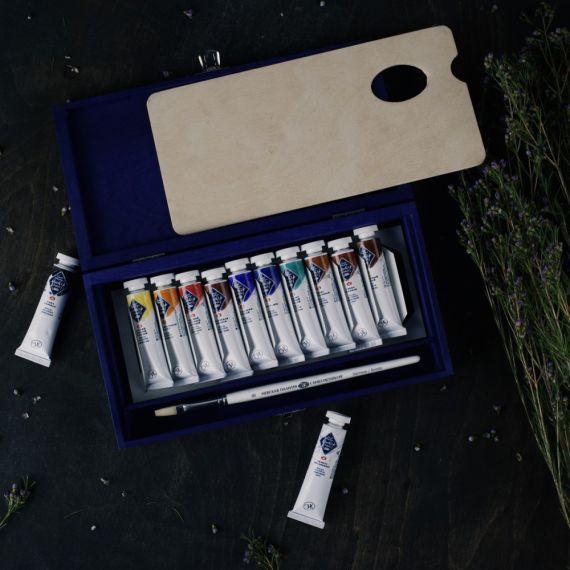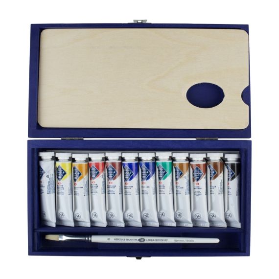 Мастер-Класс Набор масляных красок 12цв 18мл синее дерево с китью