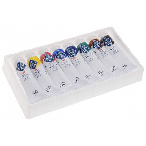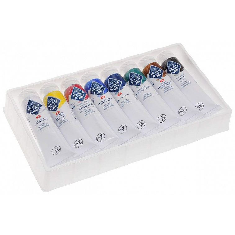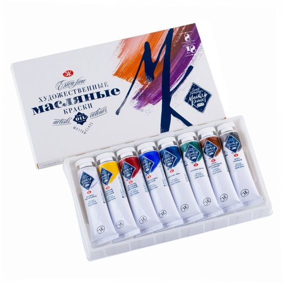 Тонкодисперсные, пастозные художественные краски "Мастер-Класс" производятся Заводом художественных красок «Невская палитра». Состоят из высококачественных пигментов и представляют собой смесь качественных красителей и связующих масел. В составе каждого цвета всего один пигмент, поэтому масляные краски "Мастер-Класс" отличаются уникальной чистотой цвета, светостойкостью и хорошей смешиваемостью. Так же в наборе использованы красители натурального происхождения, которые не менее стойки. Ассортимент продукции представлен несколькими типами: прозрачные, полупрозрачные и кроющие. Прозрачные отличаются низкой степенью покрытия, что позволяет использовать их в технике лессировки. Художественные краски "Мастер-Класс" могут использоваться для выполнения реставрационных работ, так как не меняют изначального тона после высыхания. Это художественные масляные краски высокого качества преимущественно для профессионалов и студентов художественных студий и вузов. В наборе 8 цветов в тубах объемом 18 мл.