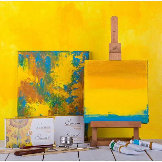 Художественные масляные краски серии «Сонет» разработаны по новейшим технологиям с использованием современных материалов в рецептурах. Выпускаются на синтетических связующих и без применения дорогостоящих пигментов. Предназначены преимущественно для тех, кто учится живописному мастерству. Рекомендуются для выполнения эскизов, набросков, курсовых и дипломных работ. Дорогие неорганические пигменты (кадмиевые и кобальтовые) заменены светостойкими органическими. Процент связующих, добавок и наполнителей в составе увеличен. Сбалансированная палитра включает наиболее популярные в живописи цвета.