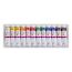 Состав набора: Белила титановые, Лимонная, Желтая средняя, Охра золотистая, Красная светлая, Карминовая, Зеленая светлая, Изумрудно-зеленая, Синяя светлая, Ультрамарин, Умбра жженая, Черная.