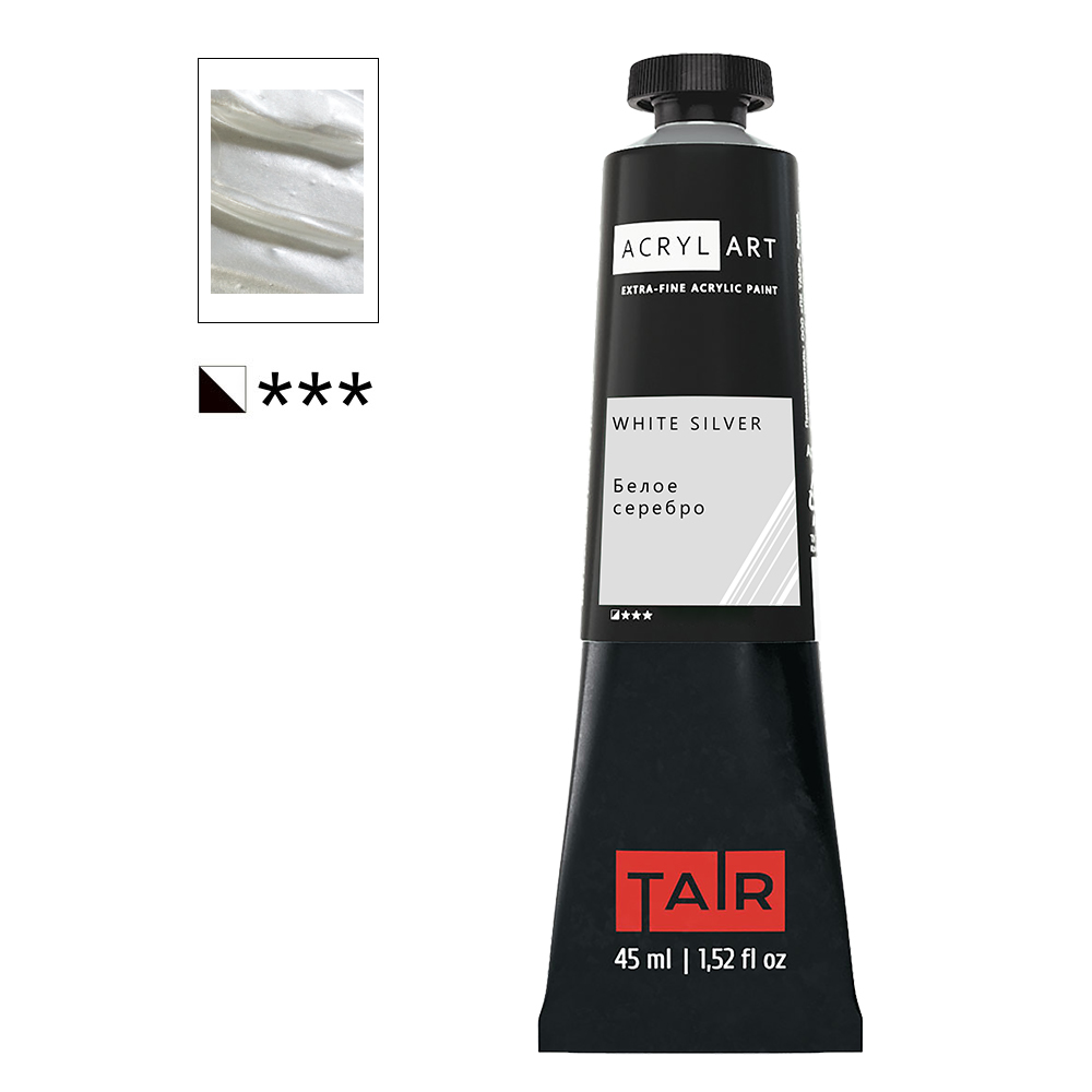 Tair Краска акриловая 45мл туба Acryl-art Белое серебро