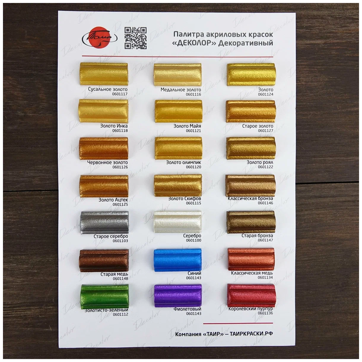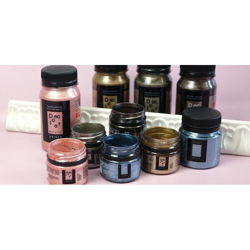 Художественные акриловые краски «Деколор» используются для имитации поверхности различных металлов. По консистенции — густые, приближенные к масляным краскам. Используются в живописных и декоративных техниках. Прекрасно подходят для объёмной живописи благодаря своим характеристикам и консистенции, а также успешно используются в техниках «сухой кисти», нанесении через трафарет, золочении элементов и т.д.