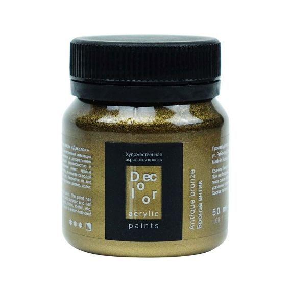 Акрил ДЕКОЛОР – смесь полиакрилатов и пигментов, вододисперсная вязкотекучая художественная краска. В серию красок ДЕКОЛОР вошли перламутровые и металлические оттенки. Краски хорошо ложатся на картон, древесину, гипс, камень, бетон и керамику. После высыхания образуют эластичную долговечную пленку, которая устойчива к воде и внешним воздействиям. Акрил ДЕКОЛОР может использоваться не только в декоративных и художественных целях, но и в реставрационных работах.