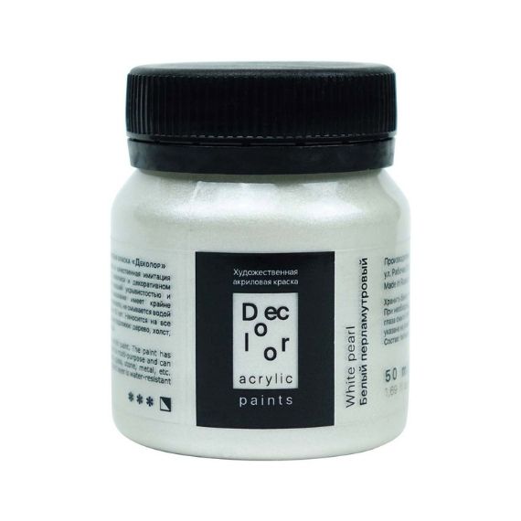 Акрил ДЕКОЛОР – смесь полиакрилатов и пигментов, вододисперсная вязкотекучая художественная краска. В серию красок ДЕКОЛОР вошли перламутровые и металлические оттенки. Краски хорошо ложатся на картон, древесину, гипс, камень, бетон и керамику. После высыхания образуют эластичную долговечную пленку, которая устойчива к воде и внешним воздействиям. Акрил ДЕКОЛОР может использоваться не только в декоративных и художественных целях, но и в реставрационных работах.