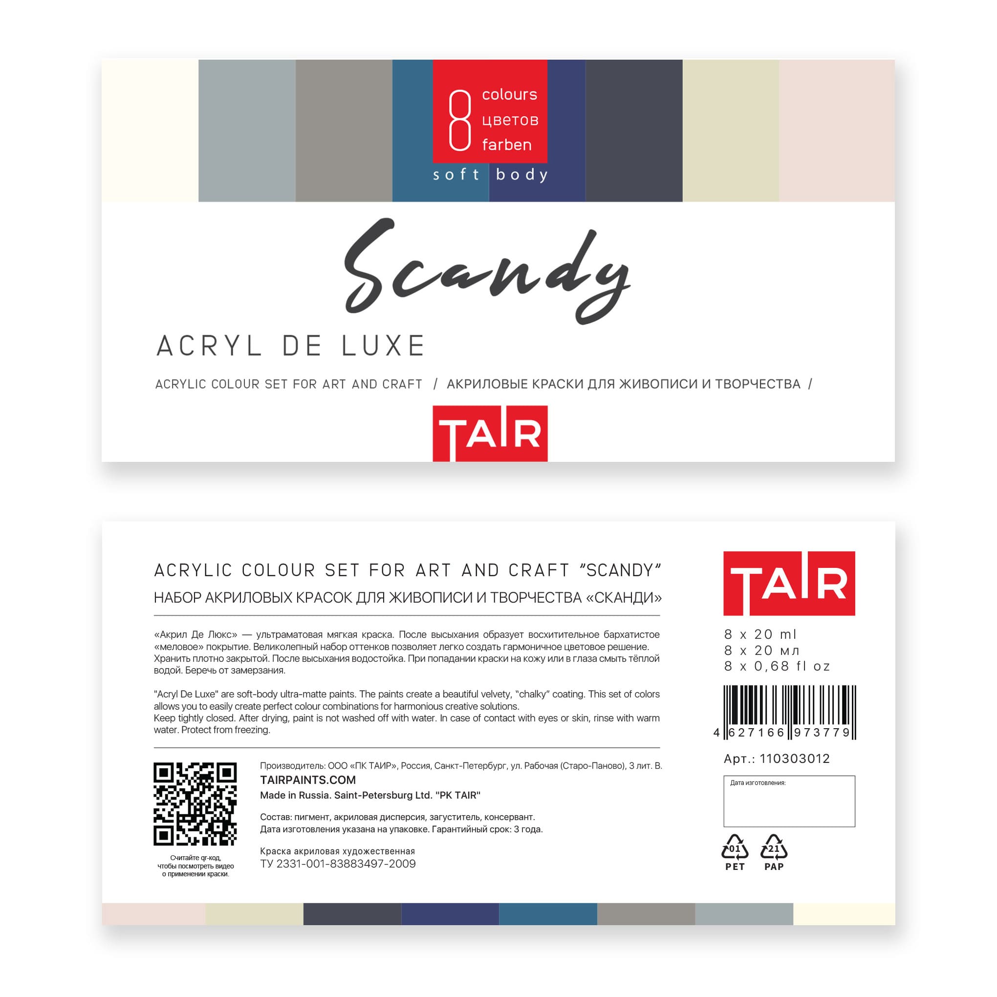 Tair Набор акриловых красок Acryl De Luxe 8цв 20мл Сканди