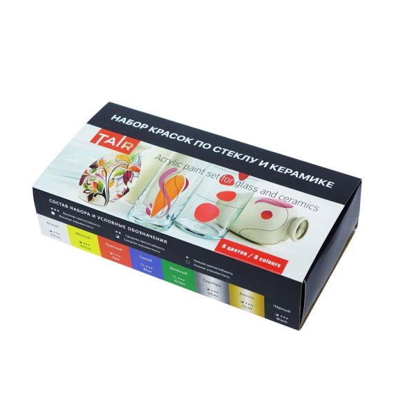 Tair Набор акриловых красок по стеклу и керамике 20мл 8цв