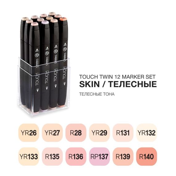 Корейские маркеры TOUCH TWIN были разработаны в 1992 году, и подходят для самых требовательных художников, иллюстраторов, дизайнеров и любителей скетчинга. Приятный на ощупь эргономический корпус позволяет держать контроль при рисовании точных и сложных скетчей. Два пера удобны для комбинированной работы: тонкое для проработки деталей и широкое плоское – для закрашивания больших фрагментов.