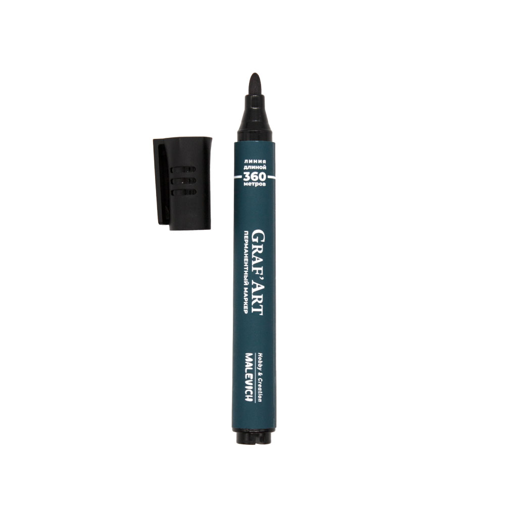Перманентный черный маркер «Малевичъ» подходит для любых видов поверхностей, для бумаги, стекла, металла, керамики, полиэтилена и т.д. Полное сцепление с поверхностью происходит через сутки, до этого срока можно стирать влажной салфеткой. После высыхания не смывается водой.