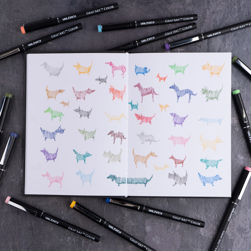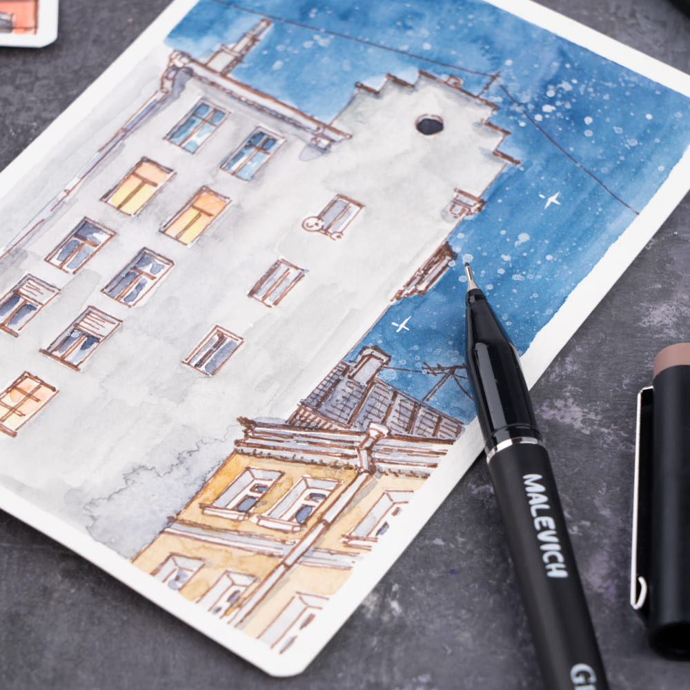 Капиллярные ручки Малевичъ Graf'Art PRO — это профессиональный инструмент для письма, черчения и рисования. В ручках используются специальные водостойкие архивные чернила с высокой степенью светостойкости и глубоким черным цветом. Рисунок после высыхания не размывается водой, за счёт этого линеры можно использовать в смешанной технике с акварелью, акрилом или гуашью. Ручки произведены в корпусе нового улучшенного дизайна — удлинённый пишущий узел и эргономичная гладкая секция захвата, которую значительно удобнее держать в руке.