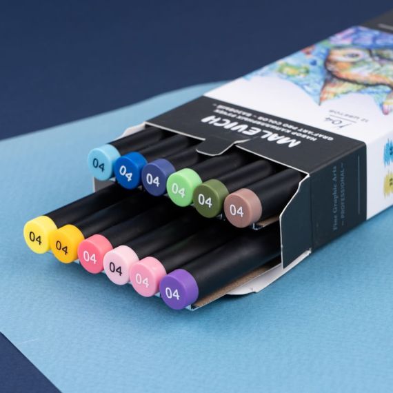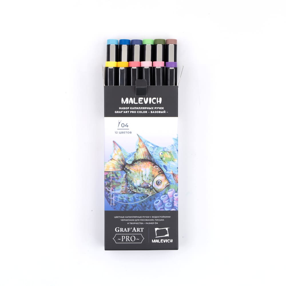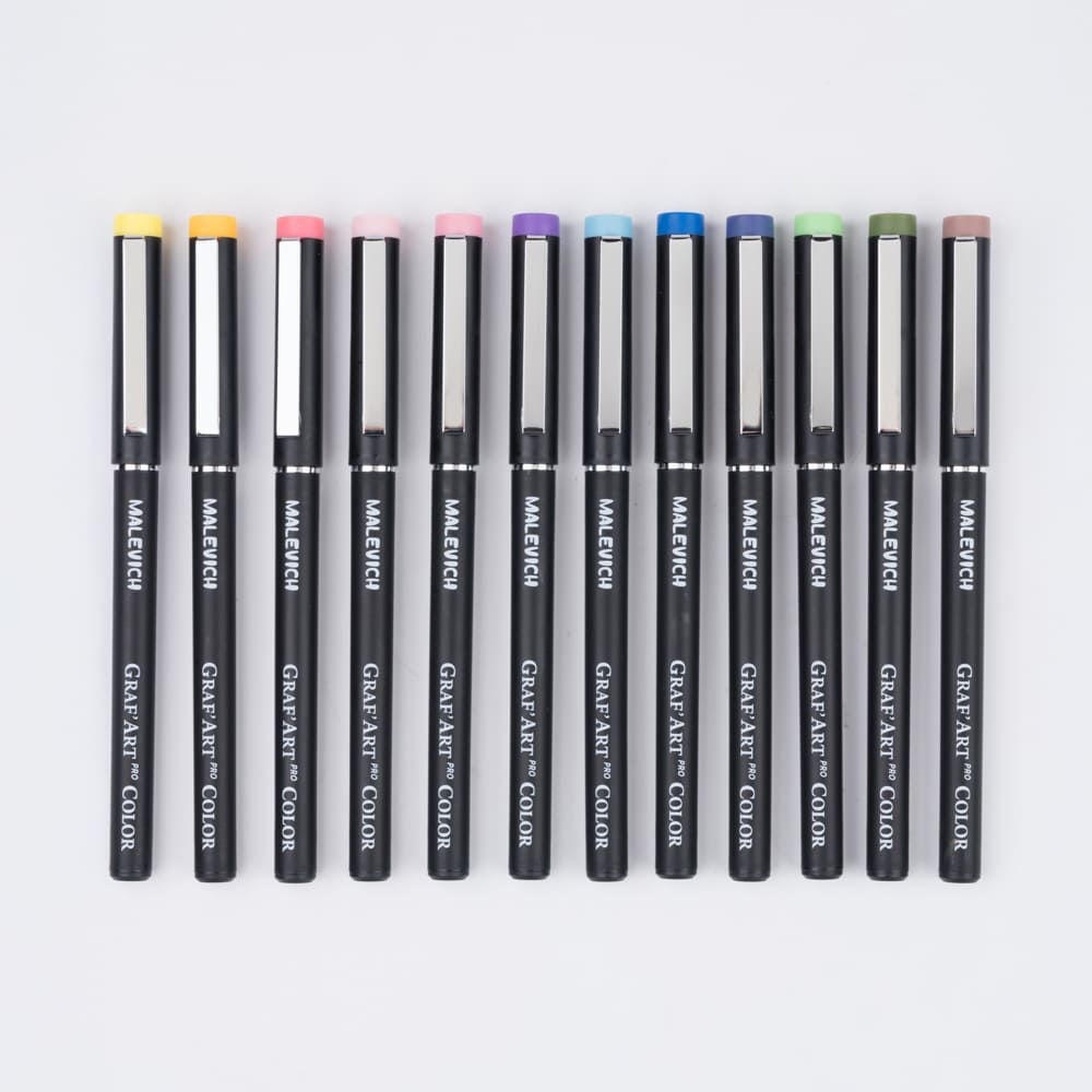 Малевичъ Набор цветных капиллярных ручек GrafArt PRO 12шт