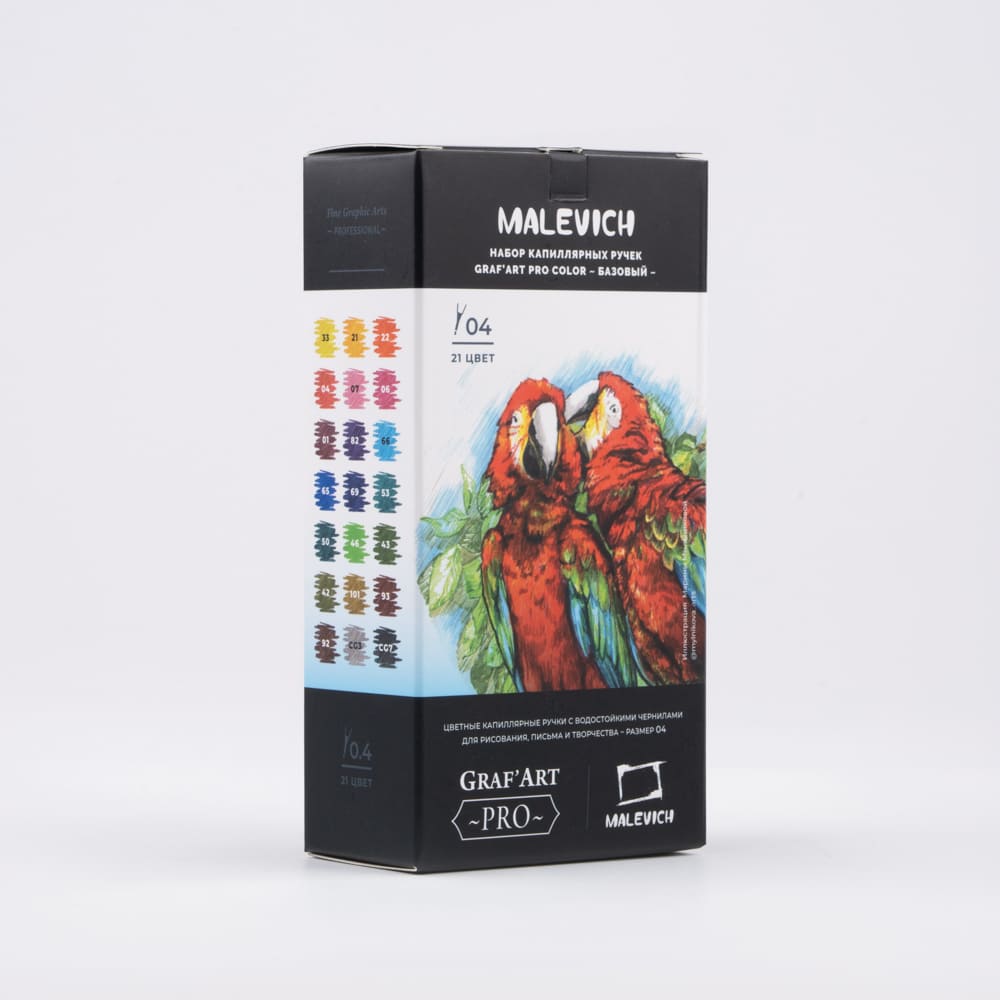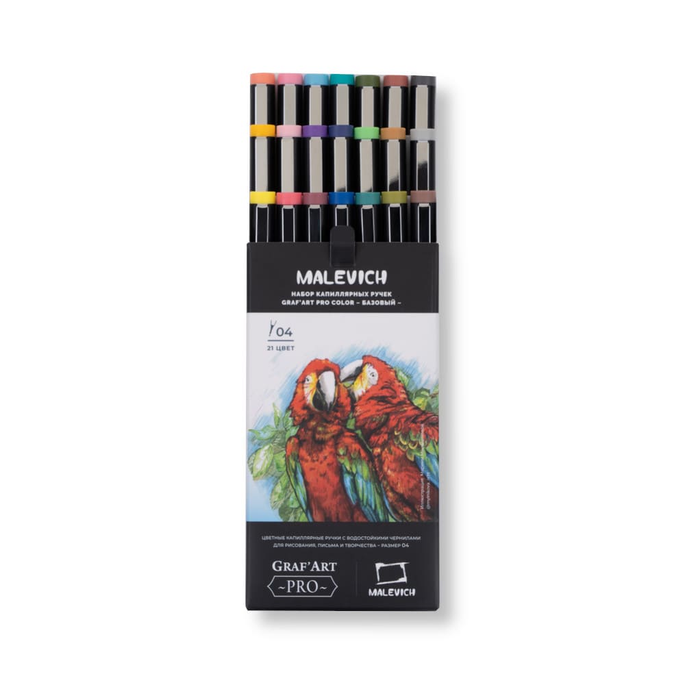 Малевичъ Набор цветных капиллярных ручек GrafArt PRO 21шт