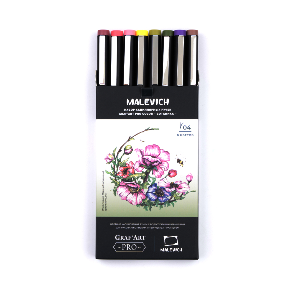 Малевичъ Набор цветных капиллярных ручек GrafArt PRO Ботаника 8шт