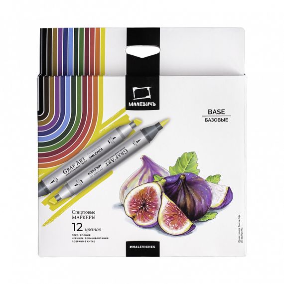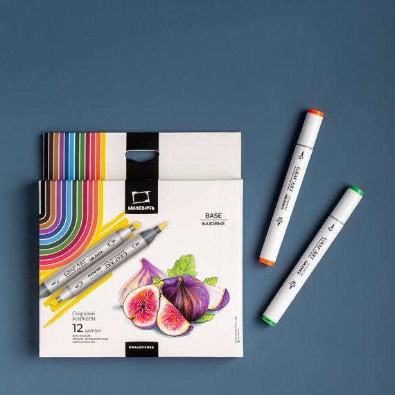 Малевичъ Набор спиртовых маркеров 12цв GrafArt Brush Базовый
