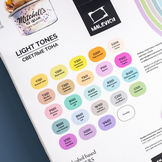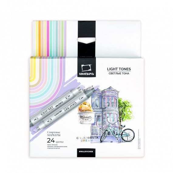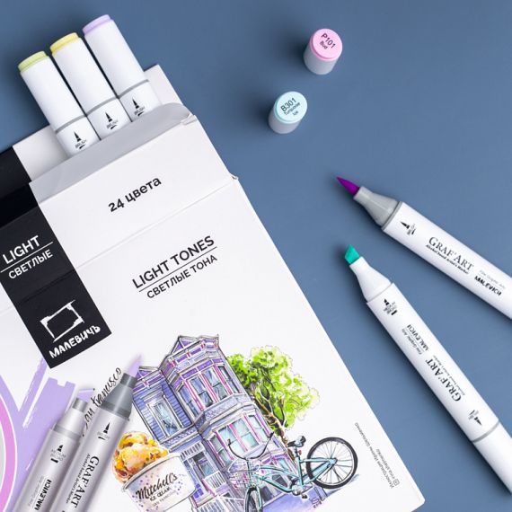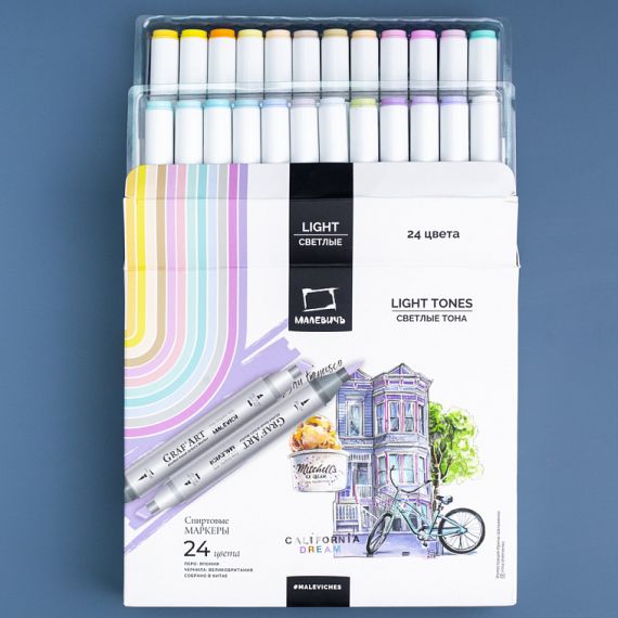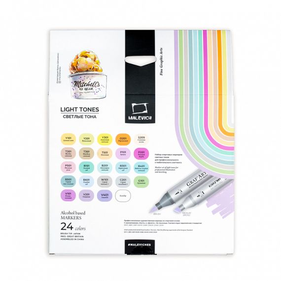 Малевичъ Набор спиртовых маркеров 24цв GrafArt Brush Светлые тона