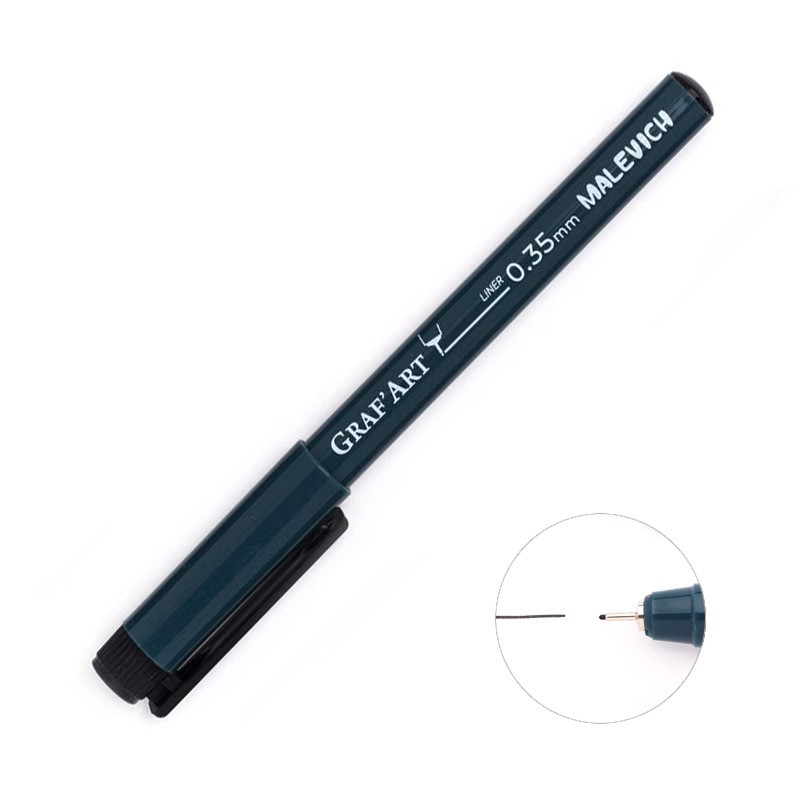 Капиллярные ручки Малевичъ "Graf'Art" — это универсальный инструмент для письма, рисования и черчения. Высококачественные чернила отлично пишут на бумаге любого типа, чернила не растекаются и не протекают на обратную сторону листа. После высыхания чернила обладают высокой степенью светостойкости, работы выполненные такими чернилами не выцветают со временем. Чернила водостойкие, что обеспечивает возможность их использования с красками и маркерами на водной основе. В серии представлены ручки с раной толщиной пишущего узла 0,15 до 0,9 мм., а так же ручки со скошенным наконечником и наконечником-кистью.