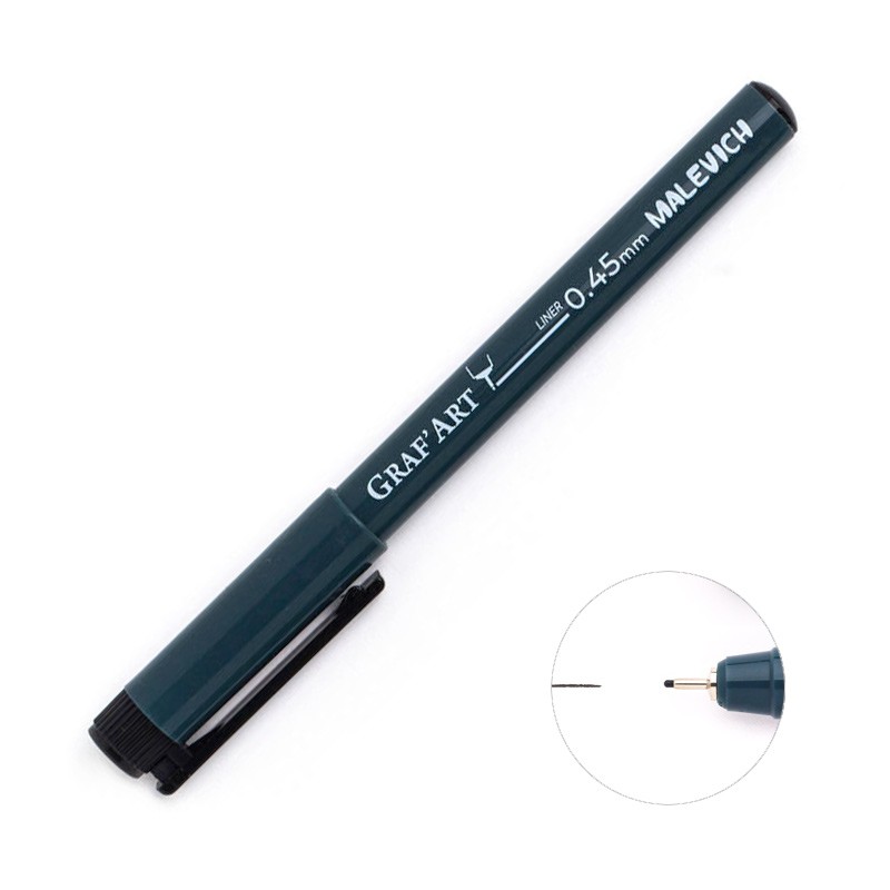 Капиллярные ручки Малевичъ "Graf'Art" — это универсальный инструмент для письма, рисования и черчения. Высококачественные чернила отлично пишут на бумаге любого типа, чернила не растекаются и не протекают на обратную сторону листа. После высыхания чернила обладают высокой степенью светостойкости, работы выполненные такими чернилами не выцветают со временем. Чернила водостойкие, что обеспечивает возможность их использования с красками и маркерами на водной основе. В серии представлены ручки с раной толщиной пишущего узла 0,15 до 0,9 мм., а так же ручки со скошенным наконечником и наконечником-кистью.
