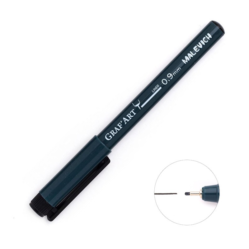 Капиллярные ручки Малевичъ "Graf'Art" — это универсальный инструмент для письма, рисования и черчения. Высококачественные чернила отлично пишут на бумаге любого типа, чернила не растекаются и не протекают на обратную сторону листа. После высыхания чернила обладают высокой степенью светостойкости, работы выполненные такими чернилами не выцветают со временем. Чернила водостойкие, что обеспечивает возможность их использования с красками и маркерами на водной основе. В серии представлены ручки с раной толщиной пишущего узла 0,15 до 0,9 мм., а так же ручки со скошенным наконечником и наконечником-кистью.