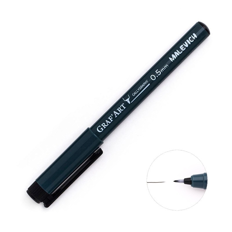 Капиллярные ручки Малевичъ "Graf'Art" — это универсальный инструмент для письма, рисования и черчения. Высококачественные чернила отлично пишут на бумаге любого типа, чернила не растекаются и не протекают на обратную сторону листа. После высыхания чернила обладают высокой степенью светостойкости, работы выполненные такими чернилами не выцветают со временем. Чернила водостойкие, что обеспечивает возможность их использования с красками и маркерами на водной основе. В серии представлены ручки с раной толщиной пишущего узла 0,15 до 0,9 мм., а так же ручки со скошенным наконечником и наконечником-кистью.