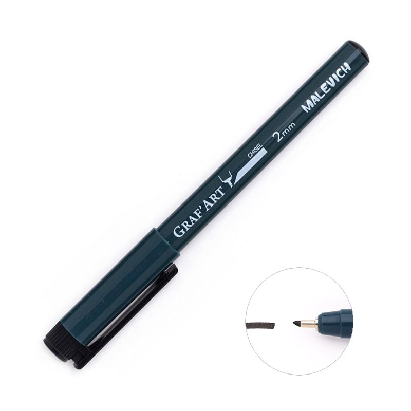 Капиллярные ручки Малевичъ "Graf'Art" — это универсальный инструмент для письма, рисования и черчения. Высококачественные чернила отлично пишут на бумаге любого типа, чернила не растекаются и не протекают на обратную сторону листа. После высыхания чернила обладают высокой степенью светостойкости, работы выполненные такими чернилами не выцветают со временем. Чернила водостойкие, что обеспечивает возможность их использования с красками и маркерами на водной основе. В серии представлены ручки с раной толщиной пишущего узла 0,15 до 0,9 мм., а так же ручки со скошенным наконечником и наконечником-кистью.