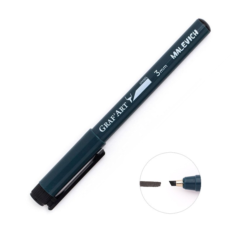 Капиллярные ручки Малевичъ "Graf'Art" — это универсальный инструмент для письма, рисования и черчения. Высококачественные чернила отлично пишут на бумаге любого типа, чернила не растекаются и не протекают на обратную сторону листа. После высыхания чернила обладают высокой степенью светостойкости, работы выполненные такими чернилами не выцветают со временем. Чернила водостойкие, что обеспечивает возможность их использования с красками и маркерами на водной основе. В серии представлены ручки с раной толщиной пишущего узла 0,15 до 0,9 мм., а так же ручки со скошенным наконечником и наконечником-кистью.