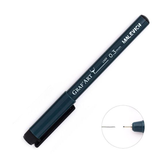 Капиллярные ручки Малевичъ "Graf'Art" — это универсальный инструмент для письма, рисования и черчения. Высококачественные чернила отлично пишут на бумаге любого типа, чернила не растекаются и не протекают на обратную сторону листа. После высыхания чернила обладают высокой степенью светостойкости, работы выполненные такими чернилами не выцветают со временем. Чернила водостойкие, что обеспечивает возможность их использования с красками и маркерами на водной основе. В серии представлены ручки с раной толщиной пишущего узла 0,15 до 0,9 мм., а так же ручки со скошенным наконечником и наконечником-кистью.