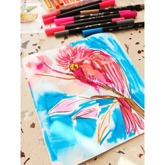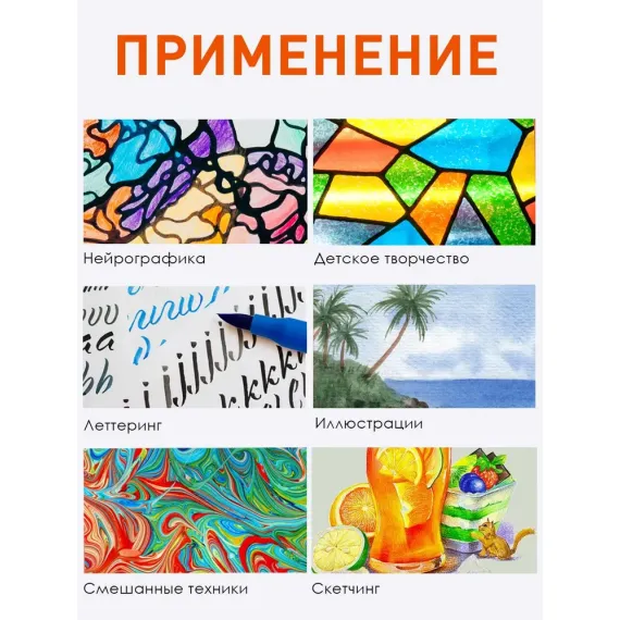 Акварельные арт маркеры подойдут для разных стилей: нейрографика, граффити, теггинг, каллиграфия, скетчи и другие. Приятный на ощупь корпус с матовым покрытием удобно лежит в руке. Легкий – можно долго работать, не уставая.