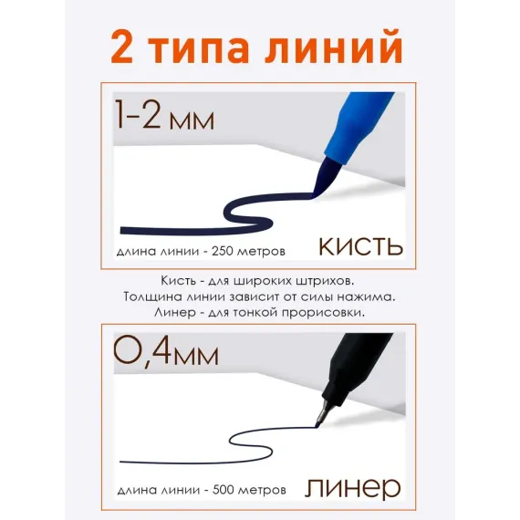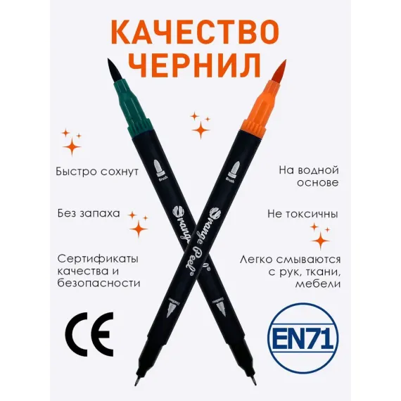 120 цветов в наборе. Два наконечника – кисть и линер.