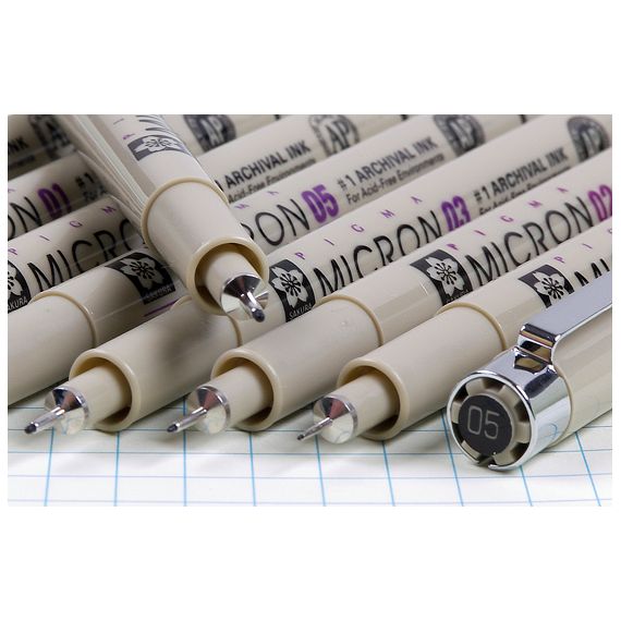 Линеры PIGMA MICRON от бренда SAKURA созданы на основе пигментных чернил архивного качества, цвет и постоянство которых неподвластно времени. Чернила, специально разработанные брендом ещё в начале 80-х содержат в себе пигменты ультра-тонкого помола, что позволяет использовать их в линерах с самым тонким пишущим узлом (0,2 мм.), а добавление смолы делает чернила по-настоящему свето- и водостойкими, позволяя использовать линеры с такими материалами, как маркеры или акварель. Линеры представлены поштучно и в наборах с различными размерами пишущего узла.