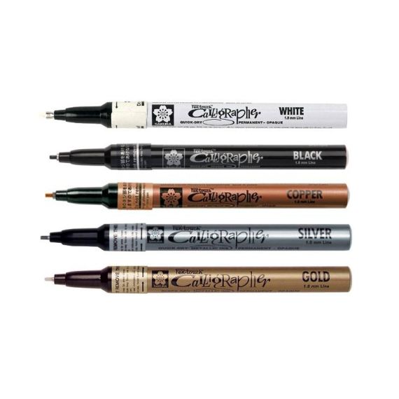 Маркеры Pen-Touch Calligrapher разработаны специально для декоративного каллиграфического письма. Серийно выпускается 5 цветов (золотой, серебряный, бронзовый, белый, черный). Маркеры представлены поштучно.