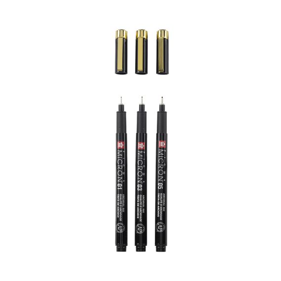 Линеры специальной лимитированной коллекции Pigma Black & Gold Edition, посвященной столетию бренда Sakura. В коллекции представлено 3 набора, которые будут доступны только в 2021 году.