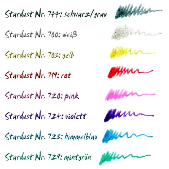 Немного магии! Зачем суетиться с блестками и клеем, когда вы можете писать с помощью блестящих чернил прямо из волшебной ручки? Яркие цвета и блеск делают "Stardust" идеальным для таких поверхностей, как бумага, картон и крафтовые вещи, а также, качественные чернила гарантируют, что буквы и страницы для скрапбукинга будут длиться годами.