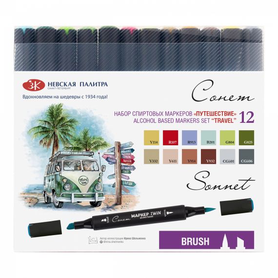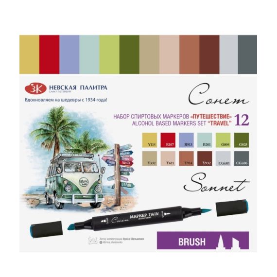 Сонет Набор спиртовых маркеров 12цв Twin Brush Путешествие