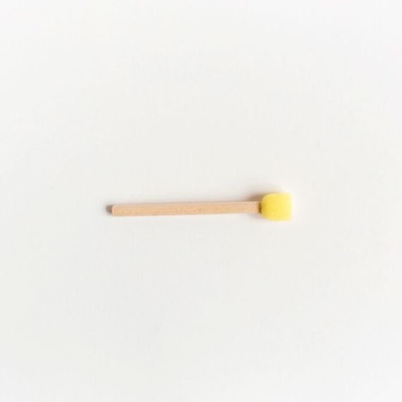 Рабочая поверхность кисти изготовлена из поролона (мягкий эластичный пористый материал напоминающий губку). Рабочая поверхность круглой формы. Кисть-губка изготавливается на короткой деревянной ручке.