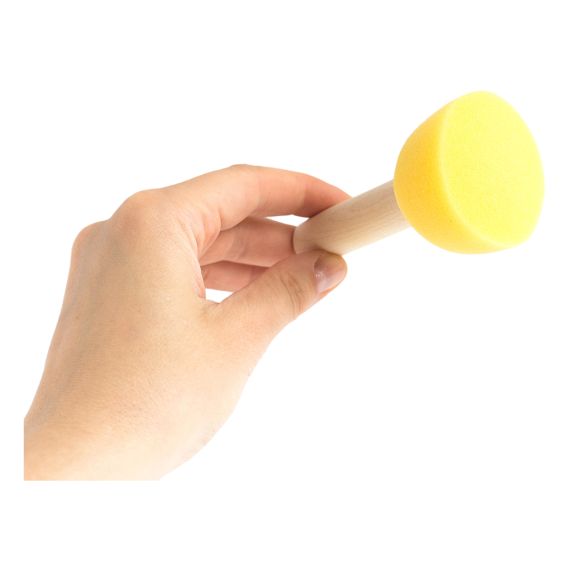 Рабочая поверхность кисти изготовлена из поролона (мягкий эластичный пористый материал напоминающий губку). Рабочая поверхность круглой формы. Кисть-губка изготавливается на короткой деревянной ручке.