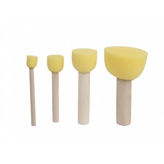 Поролоновая губка на деревянной ручке, диаметр 13, 20, 30 и 50 мм. Используется для нанесения краски на поверхность, особенно удобно использовать с трафаретами.