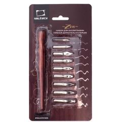Набор для каллиграфии от бренда « Малевичъ » отлично подойдет тем, кто начал интересоваться искусством красивого письма. В наборе 9 перьев с различной формой и толщиной наконечника и держатель. Перья и держатель универсальны и могут использоваться с инструментами для каллиграфии других брендов.