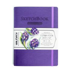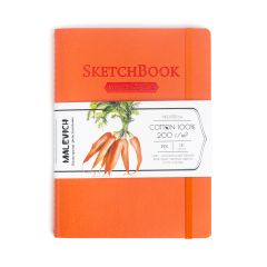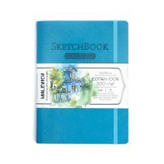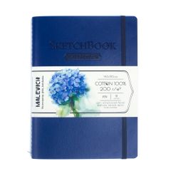 Скетчбуки  Малевичъ  с профессиональной бумагой для акварели из 100% хлопка плотностью 200 г/м, мелкое зерно. Бумага хорошо смачивается и держит воду, при этом почти не деформируется, высыхает не быстро, позволяет работать по мокрому. На бумаге хорошо получается градиент и растяжка...