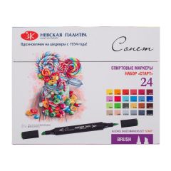 Спиртовые маркеры « Сонет » TWIN BRUSH предназначены для всех видов скетчинга, а также сложных иллюстраций, комиксов и других творческих направлений. Два пера – кисть и долото дают преимущества в работе. Перо кисть - гибкое, упругое, легко управляемое, позволяет варьировать штрих от тонких линий...